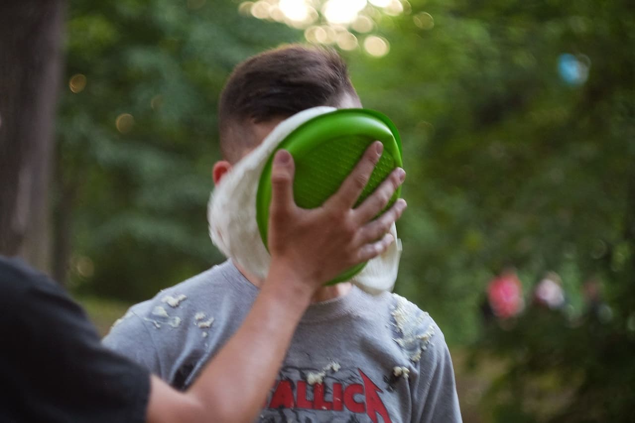 - Треба більше коржів. Після кидка все, або майже все, залишається на лиці або летить геть. В руках лишається корж з невеликим шаром крему, і це не дуже весело доїдати іншим друзям.