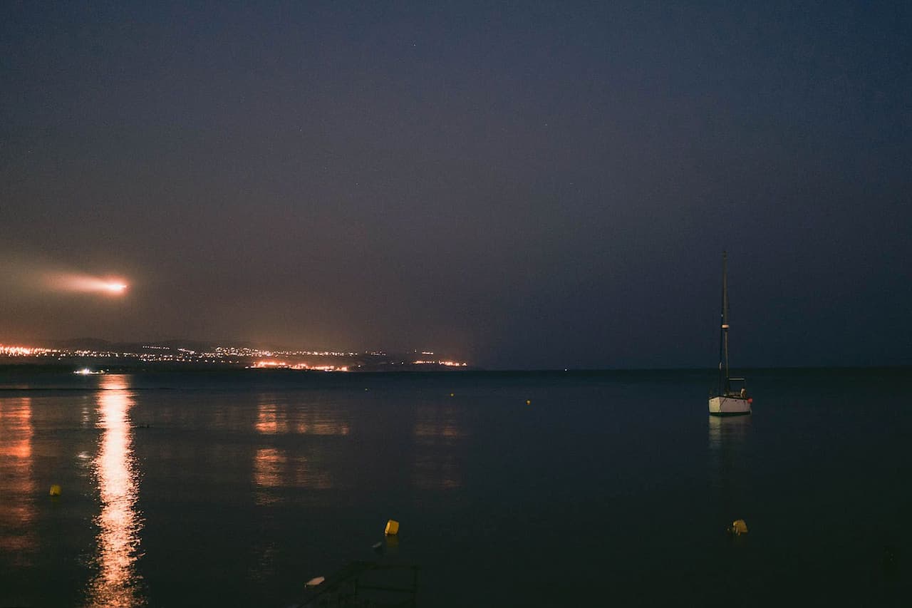 Поки ми дійшли туди, знову стало темно. Знайшли той пляж, то така вузька смуга піску, метрів 15, потім смуга кущів, і зразу за нею набережна і дорога. Таке собі місце — ліхтарі світять, дорога шумить, але кущі хоч трохи нас ховали, ну і море близько — це приємно. Координати пляжу: 34.691280, 33.079115.