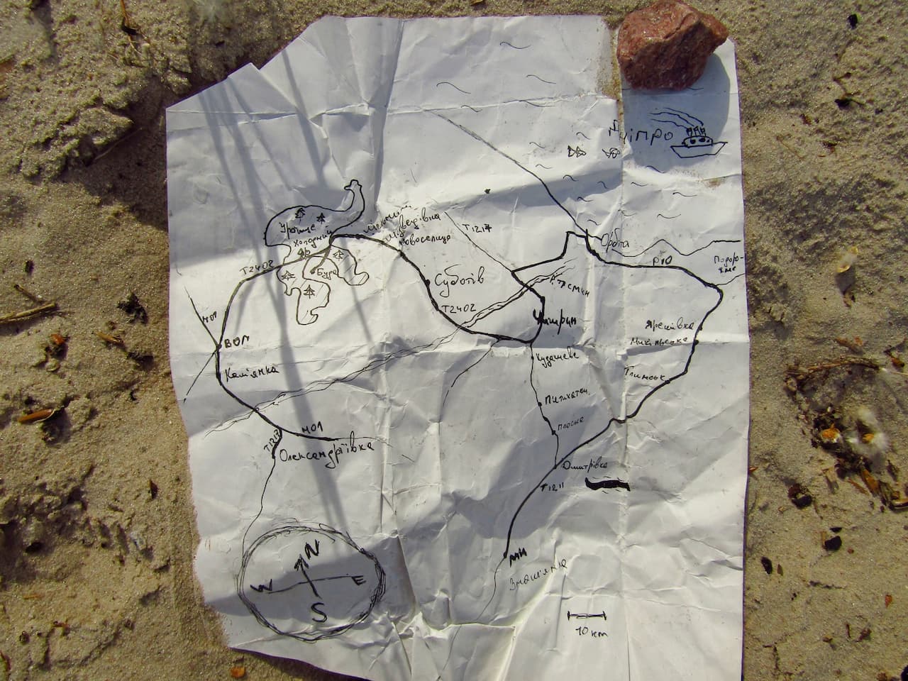 Карту малювали вже в поїзді на обгортці від шоколадки, бо було мало часу на збори.